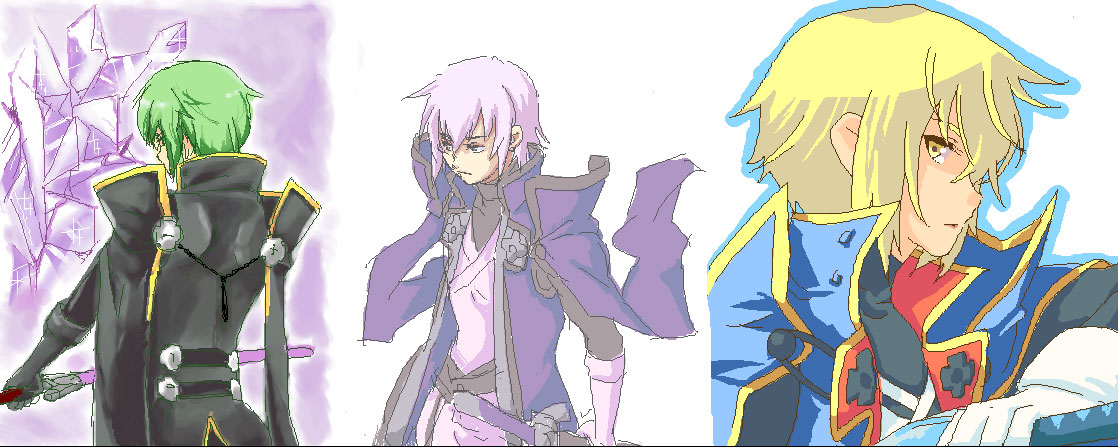 前の日記で3キャラずつ描く!とかほざいてたけど、友人がテイルズオンリーに行く!とのことで、ゲスト本にお邪魔しようってことになってそっち優先にしていたのでニューしかできませんでした(´`すいません。ゆーて、そのゲスト本、わたし2ページしか描いてないです(おま