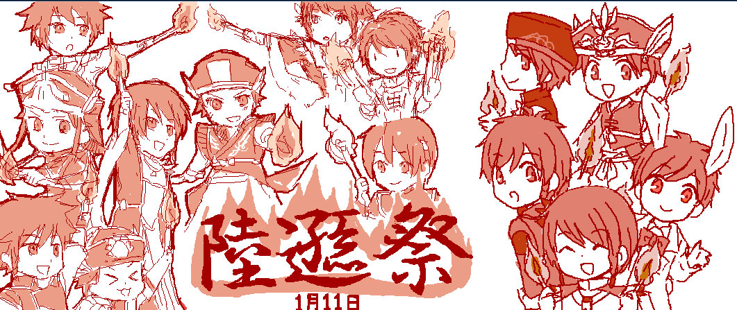 まずは手始めに表紙的なイメージで陸遜祭をタイトルにわらわらと陸遜描きまくろう!ということで、みっちりくそん!