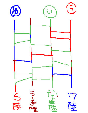 とりあえずあみだで描くもの決めましょうってことで、6陸+DC+7陸でしてみました結果がこちら!
