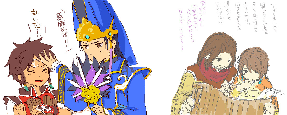 真ん中はらいさんと共同作でらいさんの描いた陸遜のまわりにいつきが鳥を大量に設置して見つめてみました恥ずかしがる陸遜かわいい超かわいい(´∀`*